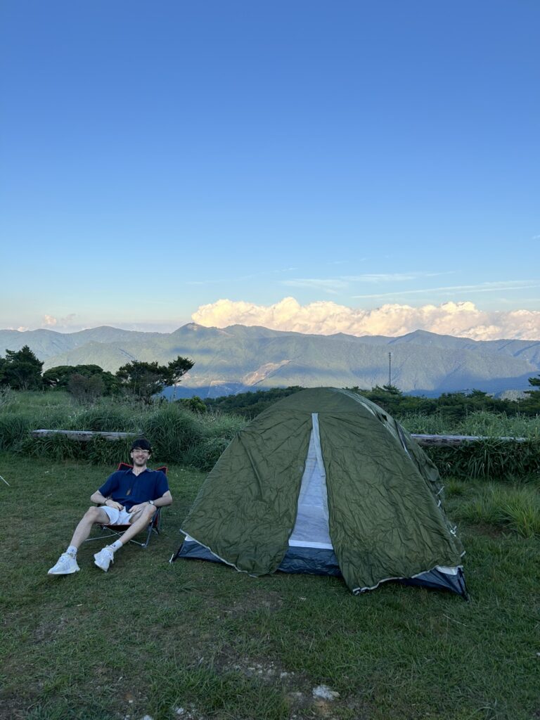 We crossed a small, hillside village that reminded me of Iya Valley’s Ochiai. The campground was located on top of a mountain that boasted a clear, 360-degree view of a mountain range, on par with the clouds.
