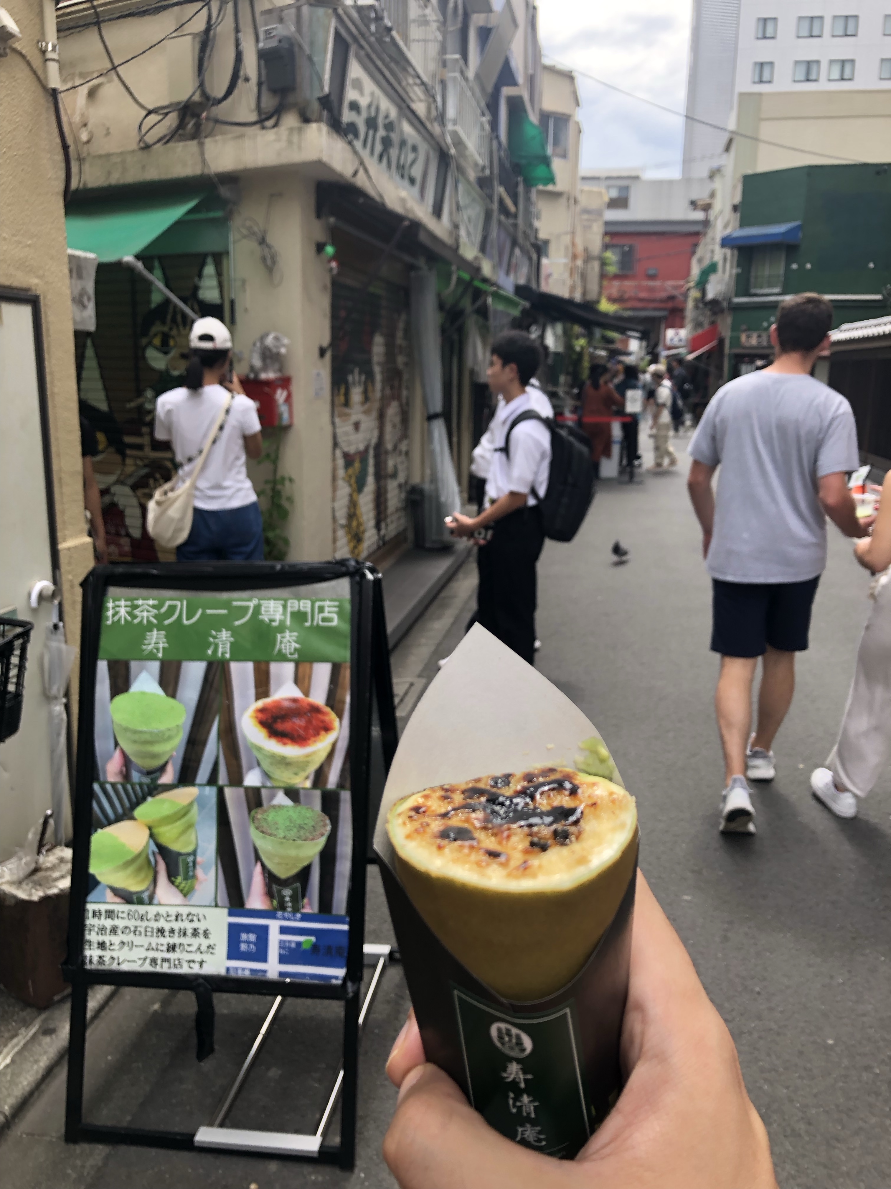 That first bite Crème brûlée matcha crepe… perhaps heaven was a food stand on earth.
