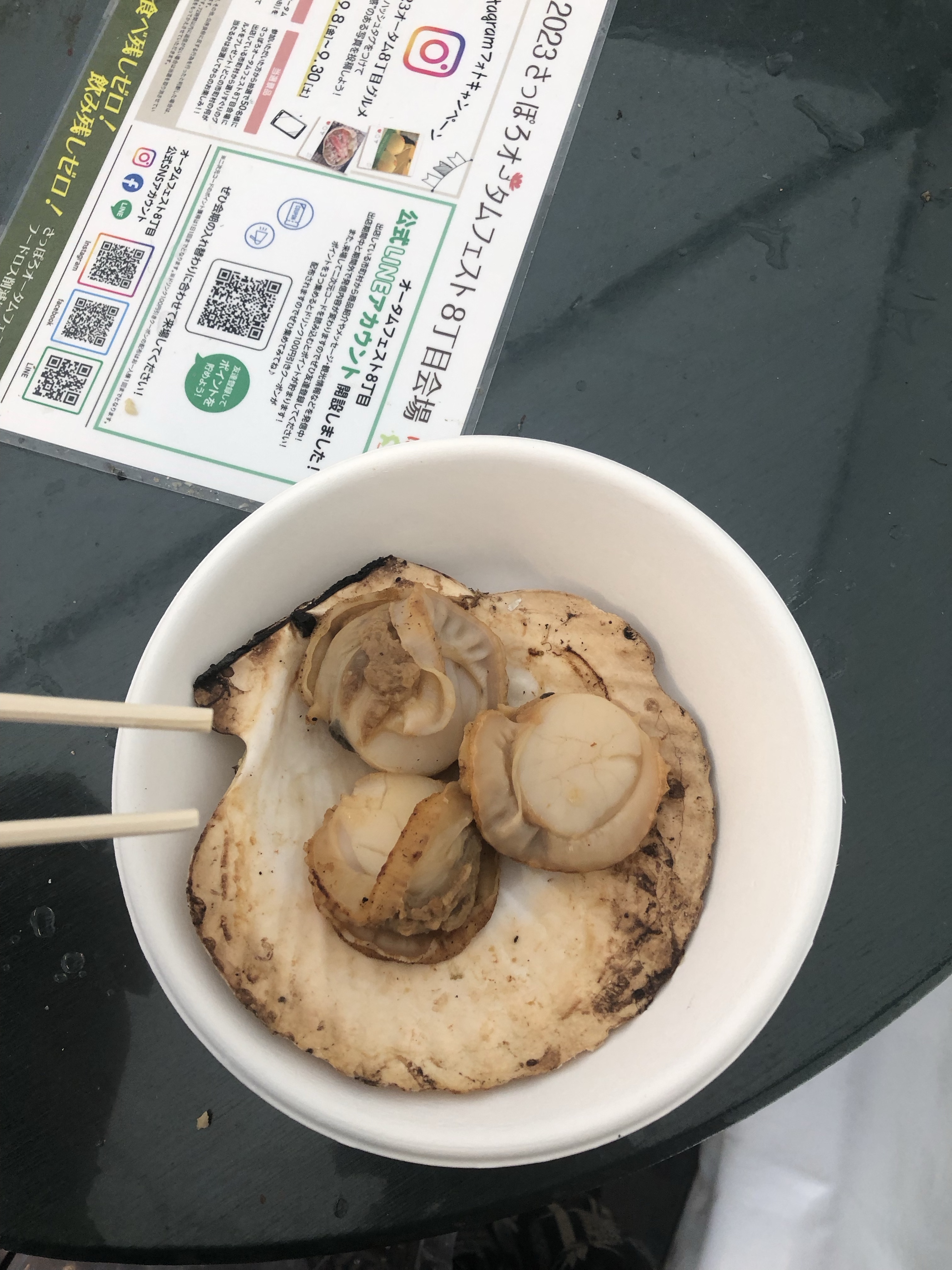 Odori park (not a park, whoever had named it, but thanks) had hosted the snow festival and now the Autumn Festival. Basically, tons of street food from all over the world. I went to the venue that featured small towns in Hokkaido, per the ojiisan’s recommendation. It was 13:00, and the festival was teeming with diners.