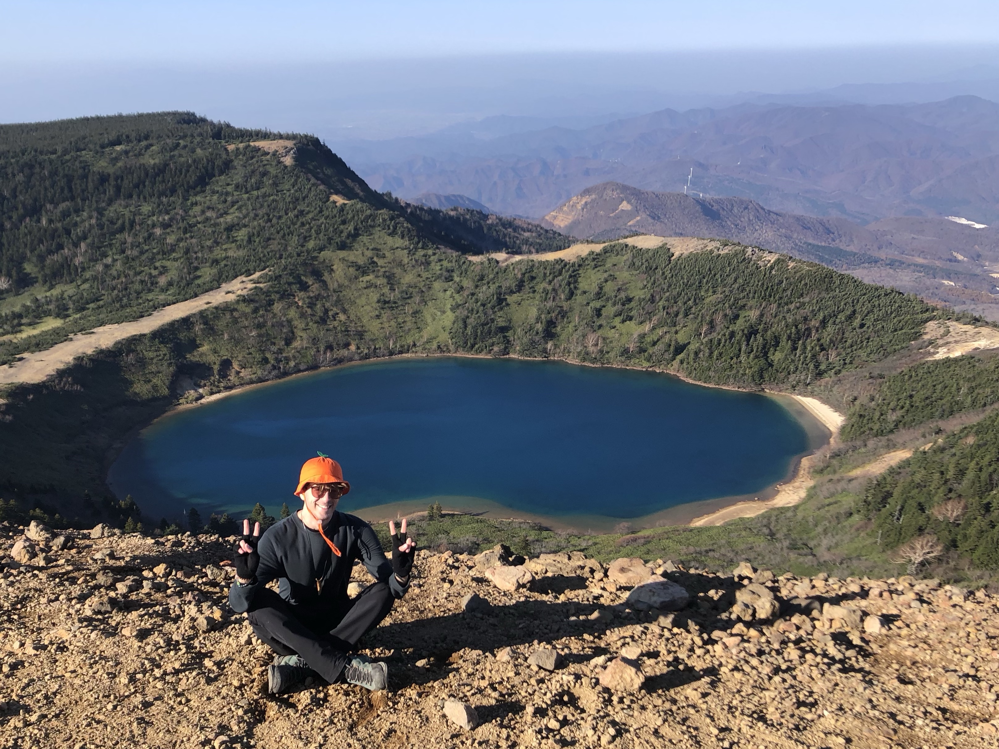 Best view for a lunch since Seoul’s Bukhansan. Better than Zao-san’s Okama crater. Blustery and cold, but still, as I lounged in front of the pond on a dangerously steep slope and shivered, I thought: “This is my happy place.”