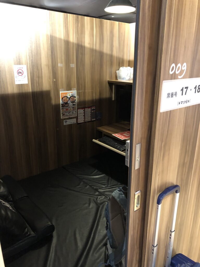 It took me ten seconds to weigh my options. I could walk for 20 minutes north to another net café that was 100% open for the night, and do a night pack for 750 yen. A bargain. But then I’d drag my luggage at midnight, in zero degrees, while on melatonin. Plus, Yonago station was 20 minutes south of me.