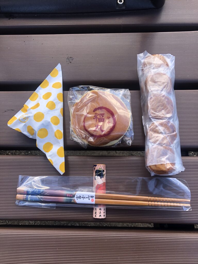 At the quaint shopping street, with cheap shops selling traditional souvenirs, I found an ukiyo-e chopstick and chopstick holder, so I wouldn’t forget how to use them while in Israel. I also came across a cheap shop for vintage kimono, geta sandals, obi belts, katana swords, and more.