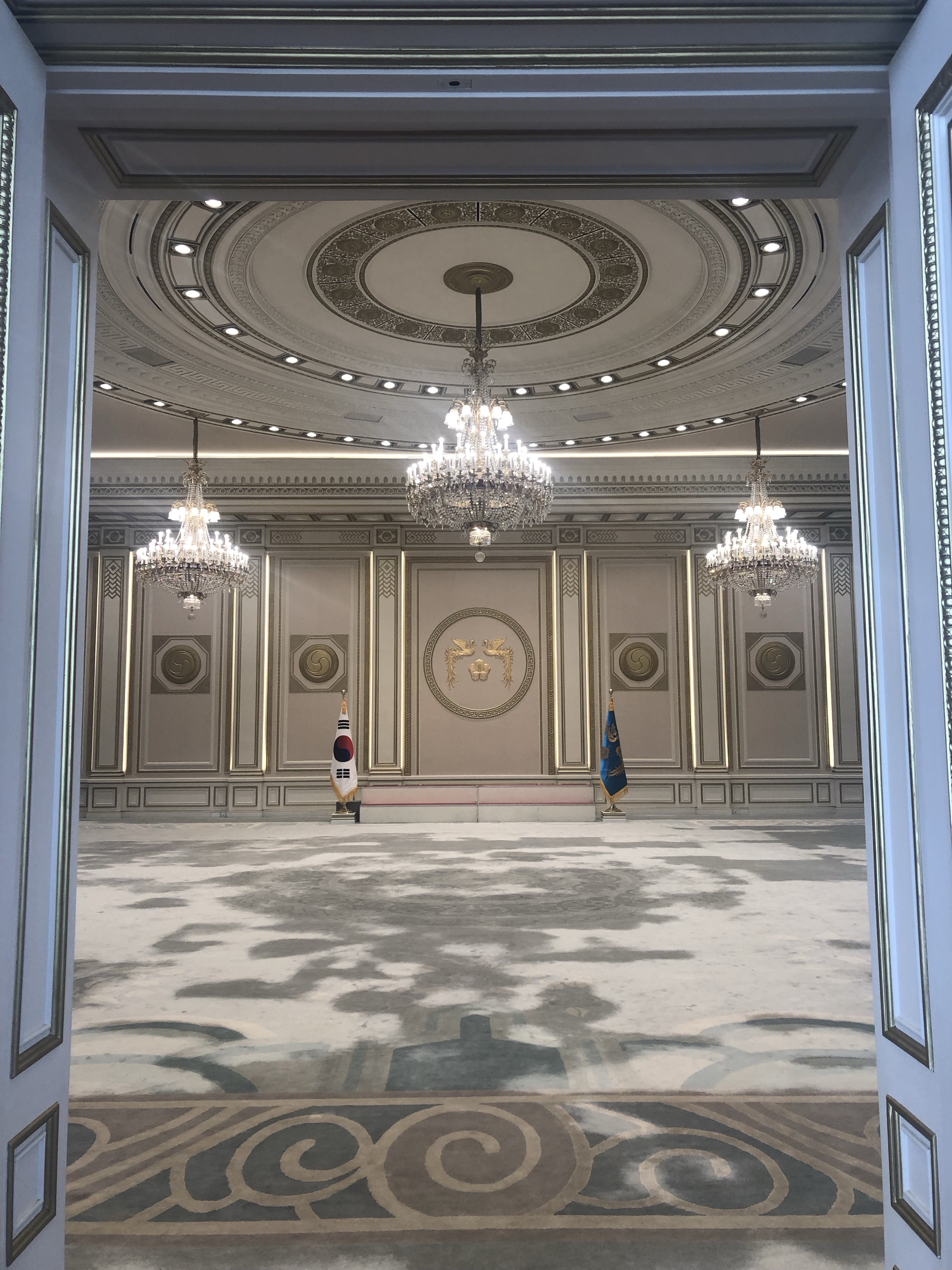 The palace was even more beautiful now that the sky donned a gradient effect and lamps lit up. The king’s throne was illuminated, the gold sparkling, the sun making way for the moon. It was a stunning room, cool and misty, atmospheric and sacred, intimate and grand and dark and light, subdued and flashy, all thanks to the minimal, warm lighting. Golden dragons shimmered on the ceiling.