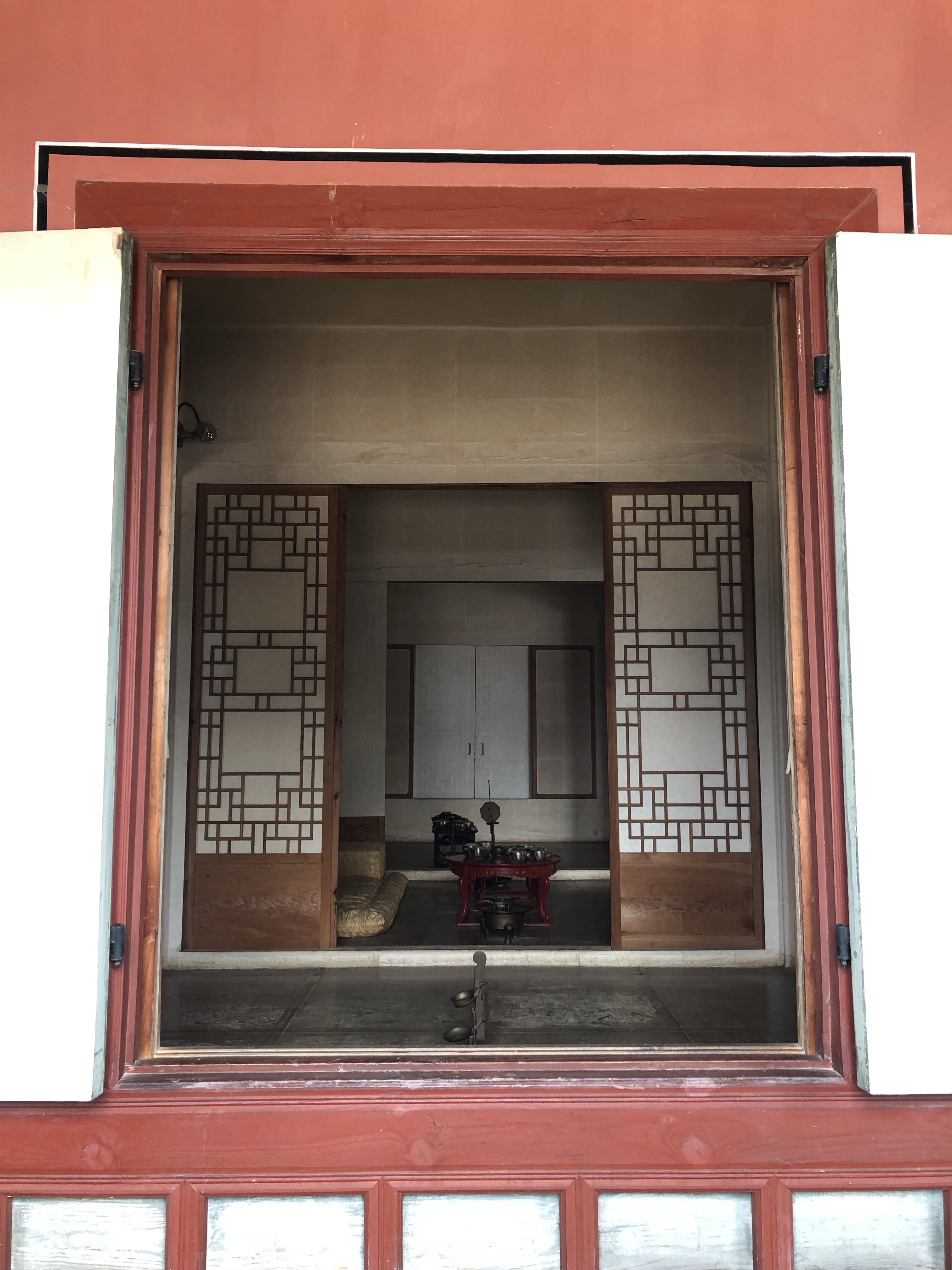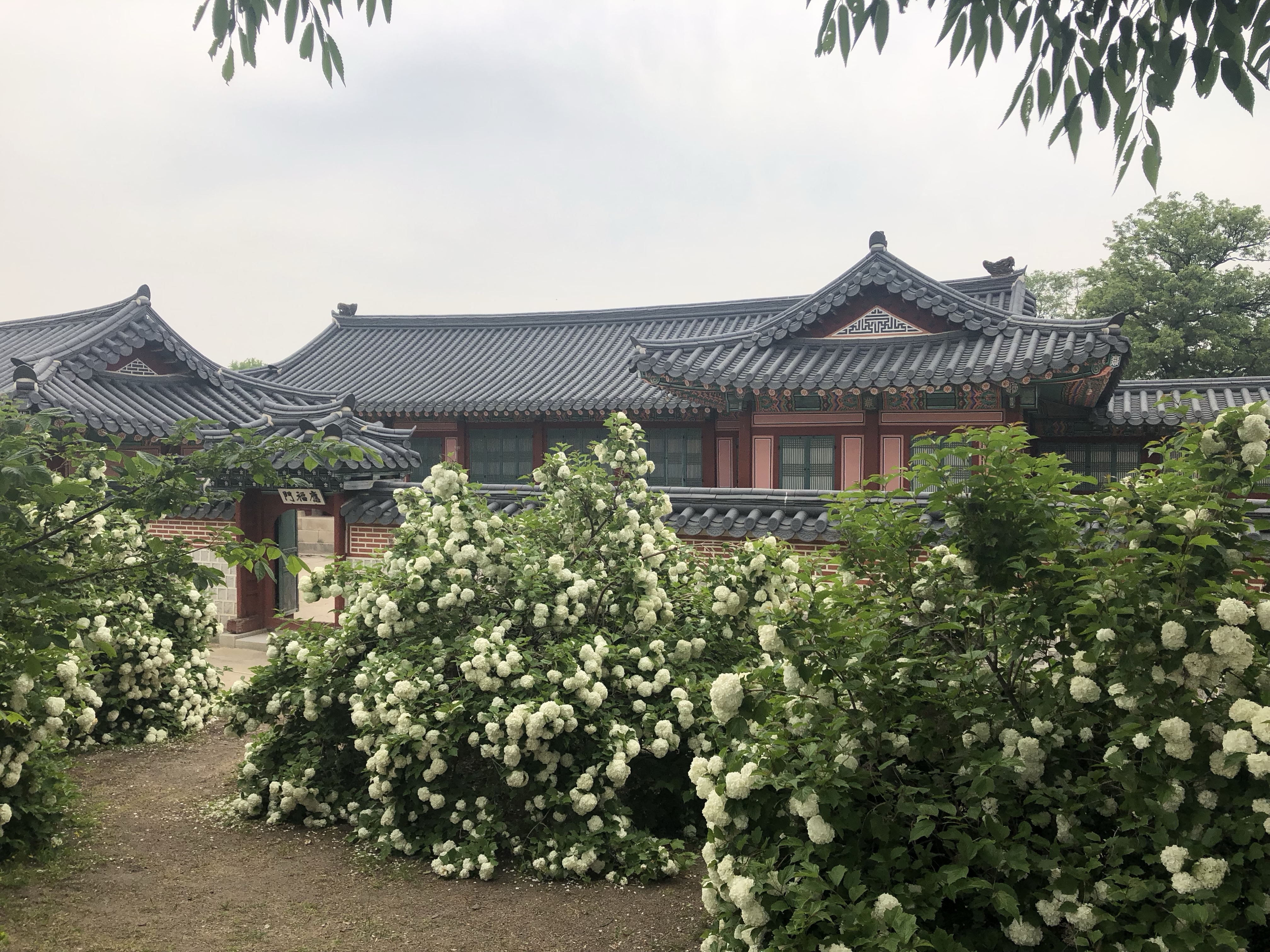 I visited the hall where Japanese assassins murdered Queen Myeongseong. Some of the other halls were plain wood – their paint hadn’t been restored yet. But it was still a pretty shade of light brown.