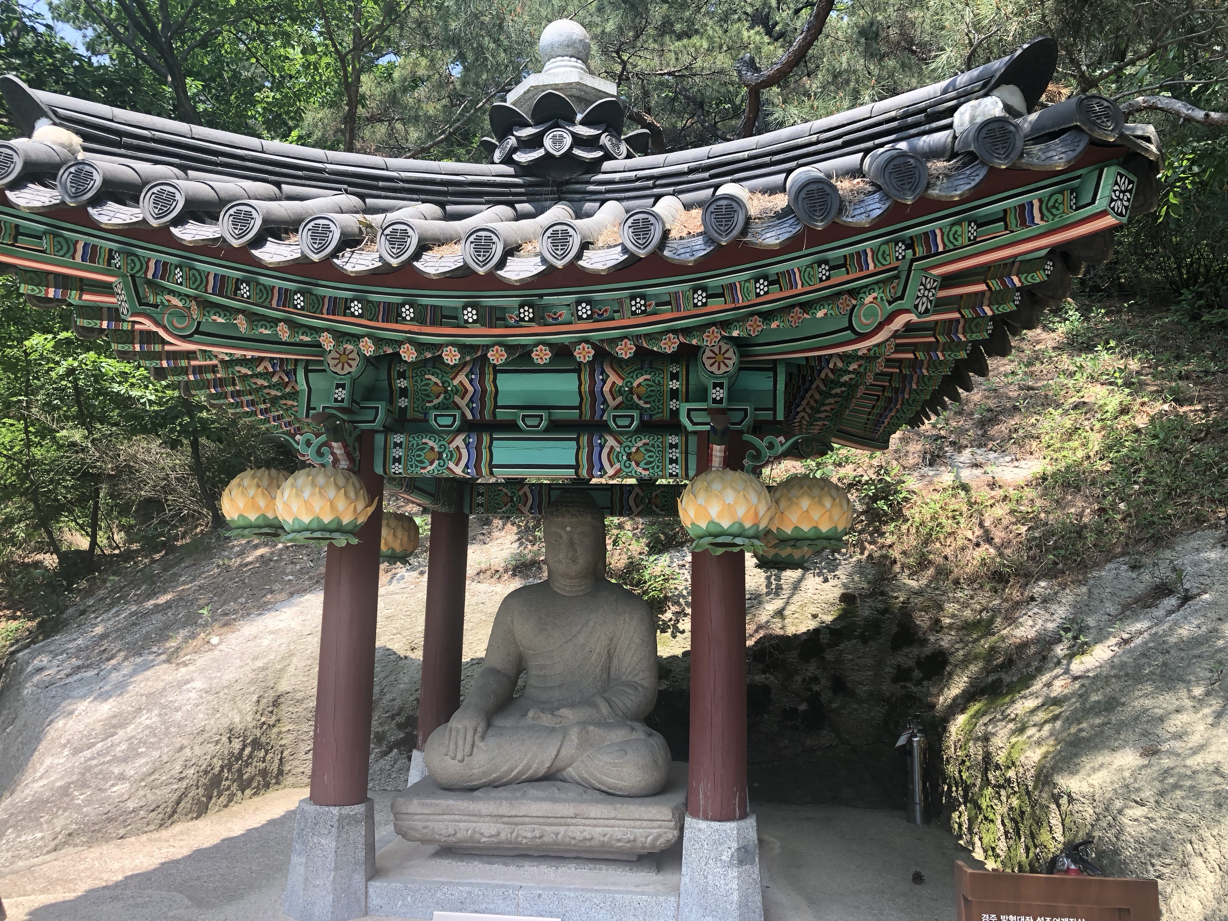 Forty minutes of rigorous climbing later, I made it to the first rest area with sweeping views. Panting and sweating, I beheld foreigners for the first time today, from France and Italy. A Korean guy was selling water bottles and popsicles. I had a small breakfast on a boulder. The eggs I’d bought yesterday were brown, and tasted like cholent.