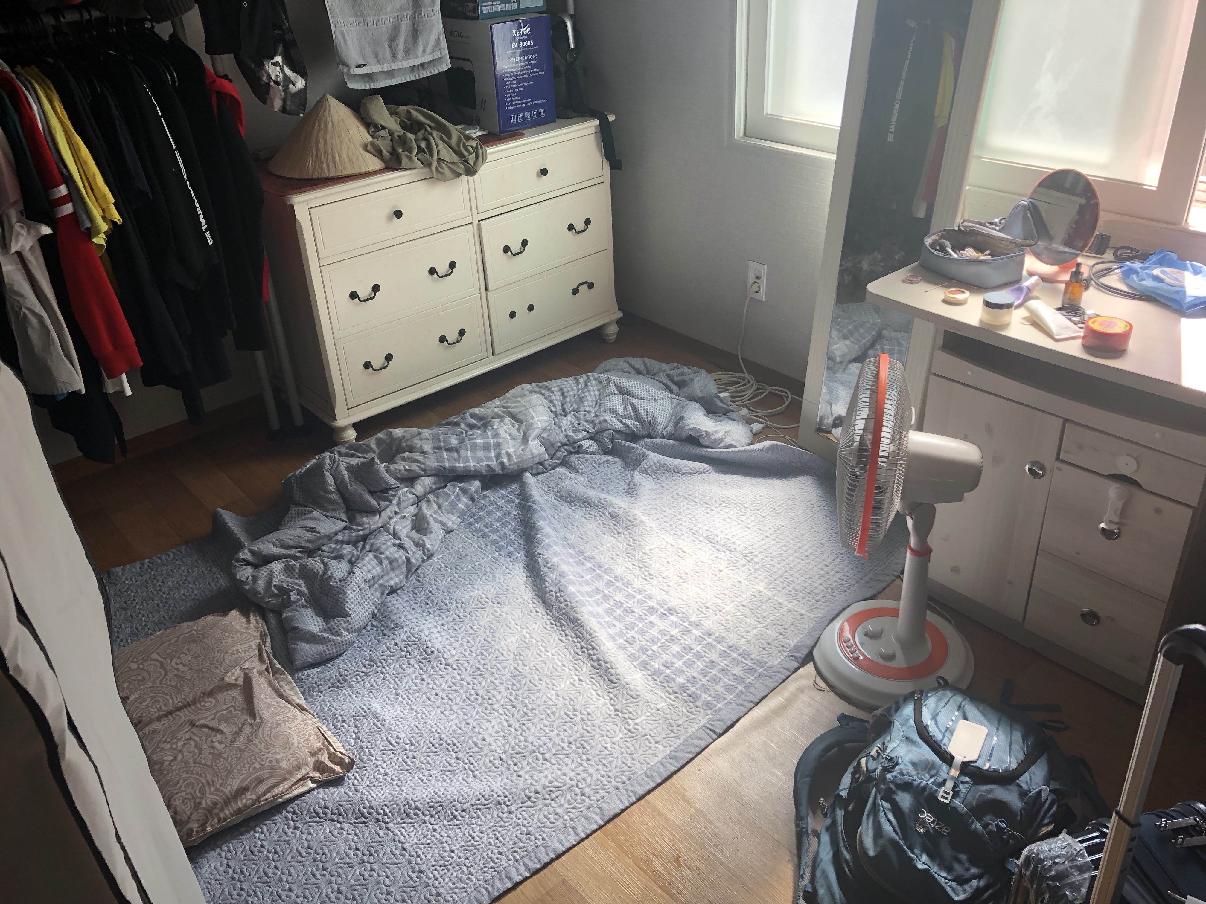 It was huge, and my room was big. Mattress again like a thin blanket. The blanket itself was actually five times thicker than the mattress. I asked the uncle if I could borrow a phone charger. He said he had allergies, and didn’t touch things touched by others.