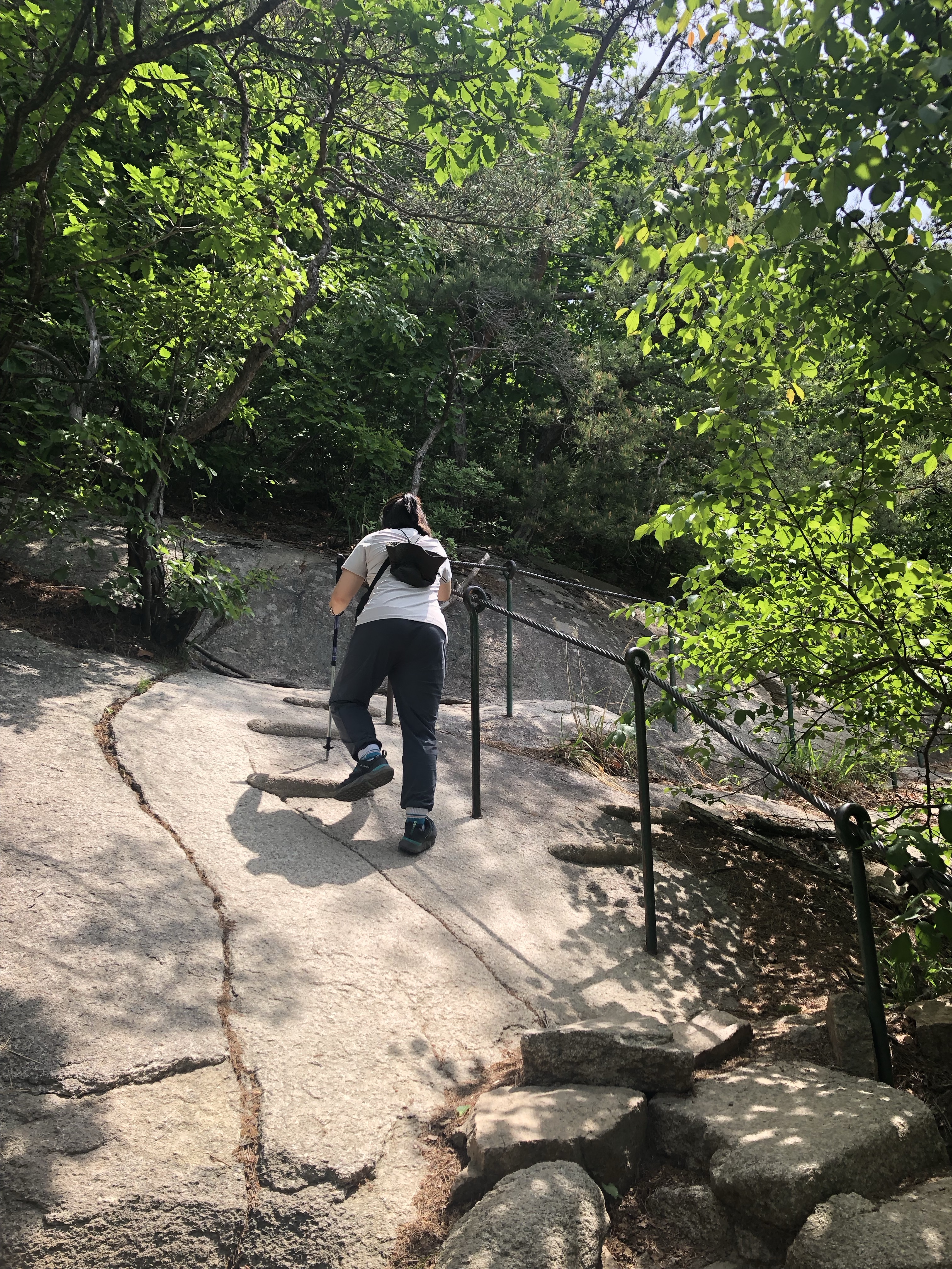 It was a weekday with sunny weather. After a sluggish breakfast, I took the metro and a bus to Bukhansan, Seoul’s tallest and most famous mountain. I met my second host, and we started hiking at 9:45.
