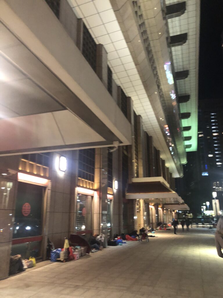 At night, we walked all the way to Ximen through Taipei main station, a huge building with western-like white columns and a Chinese-like yellow roof. All four walls of this structures were lined with homeless people. At the entrance to the main train station of the capital.
