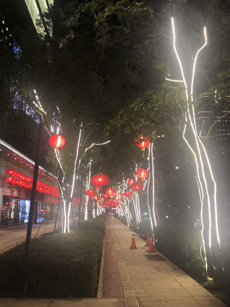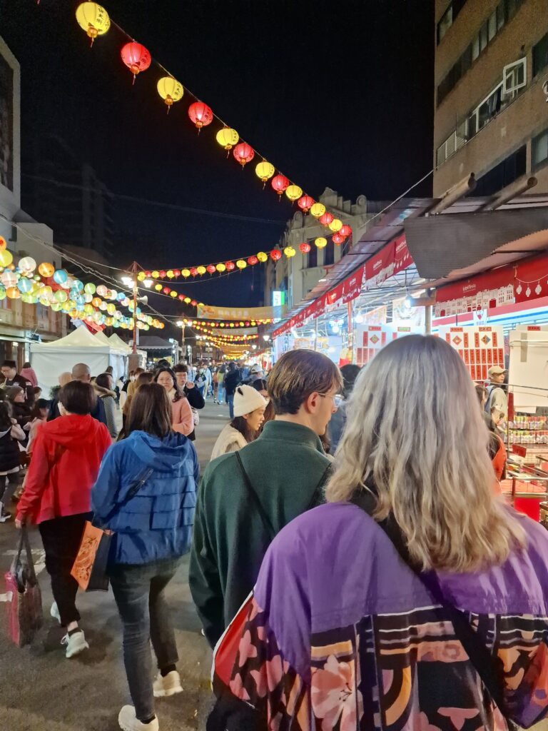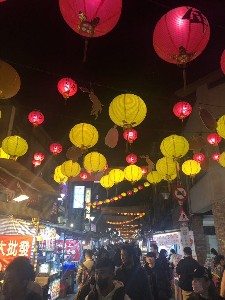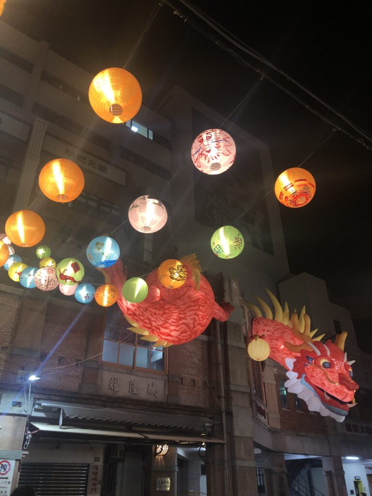 In the evening, we walked south to Dihua, the oldest street in Taiwan. Nicknamed “Tea Street” for obvious reasons, it started off as an empty boulevard, with closed stores and breezy lanterns lit at night. Then it exploded into a bustling New Year’s night market, with complete standstills and food samples in every stand.