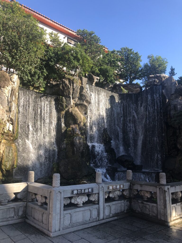 I arrived at Lunghsan temple at 15:30, half an hour before the chanting ceremony. A lavish waterfall cascaded by the entrance. Inside, my jaw dropped at the sight of an ATM and a water cooler.