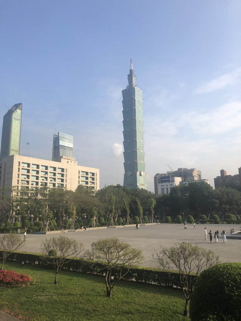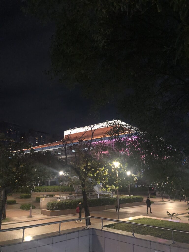 I arrived at the “New” area of Taipei, night and day compared to Ximen, “Old” Taipei. Gone were the low and dense crumbling buildings, the trash, the graffiti. I crossed the expansive, well-maintained grounds of Dr Sun Yat-sen Memorial Hall, another colossus with grey pillars and a yellow roof. By now, I’d grasped the Taiwanese “red bricks, yellow tiles, and green forest” architectural ideal.