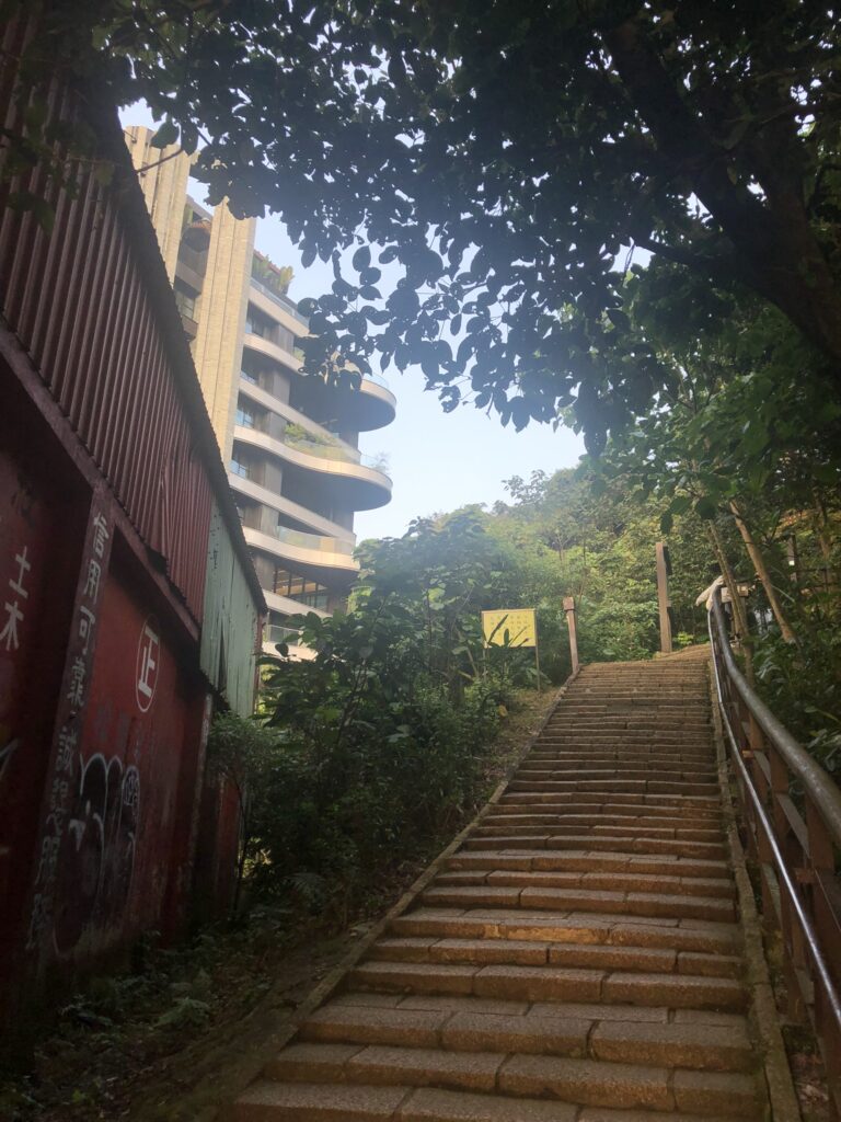 Simpe stone steps comprised the trail to Xiang-shan. Frogs croaking, trees shading. It would’ve been pleasant if it weren’t so steep. When was the last time beads of sweat were dripping down my temples?