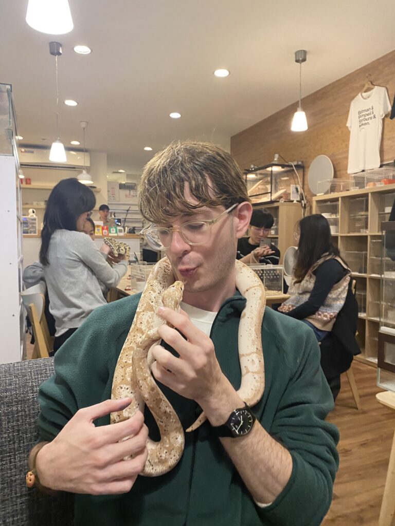 Jack, a twentysomething Brazilian from the US, tall and mellow “gentle giant” teaching English remotely while traveling the world