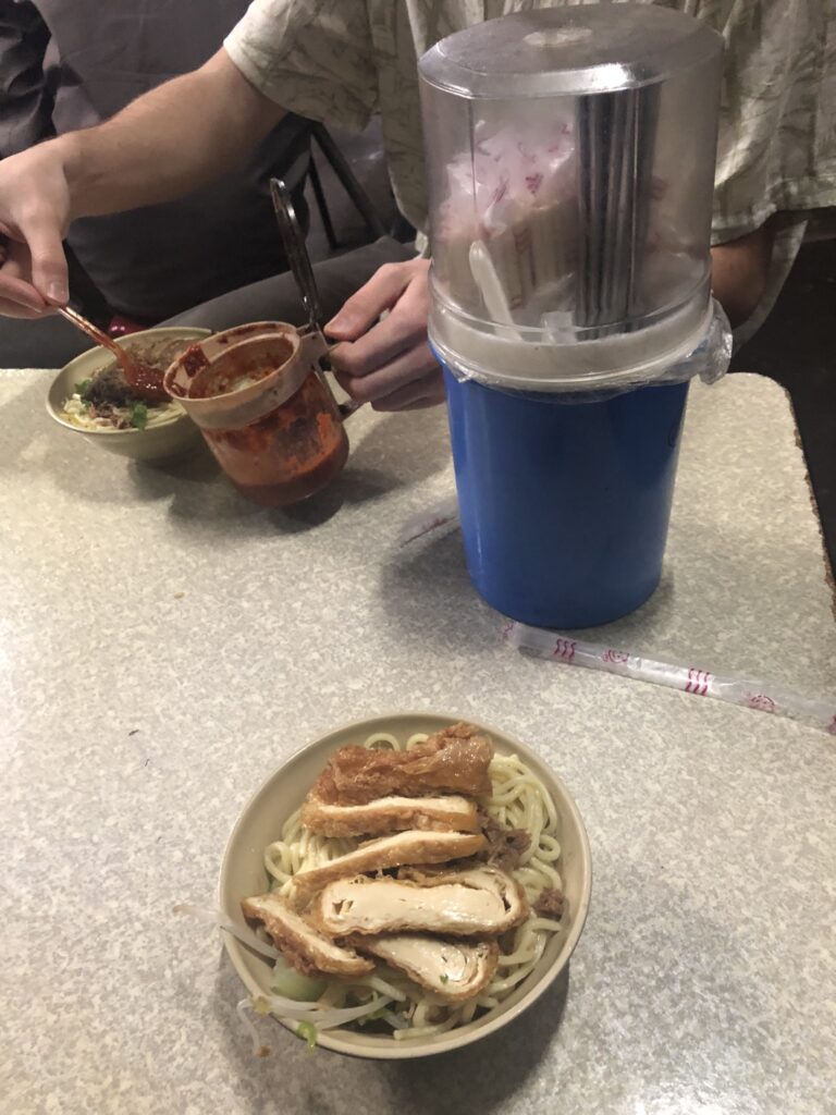 At 14:00, I forced myself to join the staff for lunch. When the owner of the hostel, a tiny and adorable Taiwanese auntie, came to the premises, she always cooked hot pot for us. It was nice how everyone ate together after the shift.