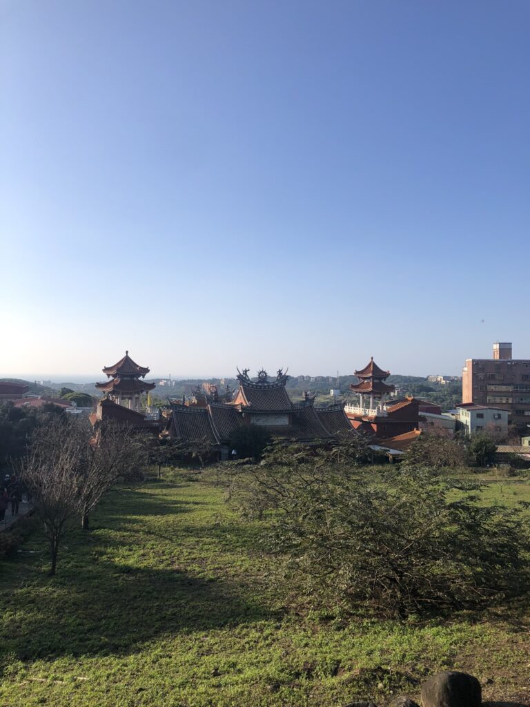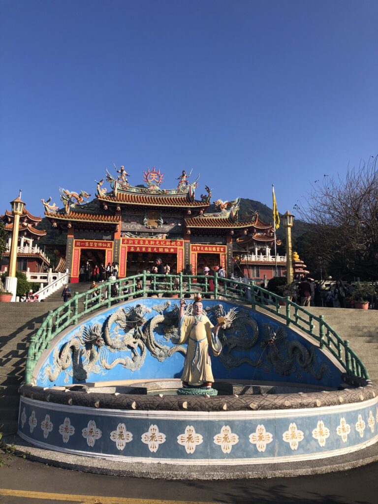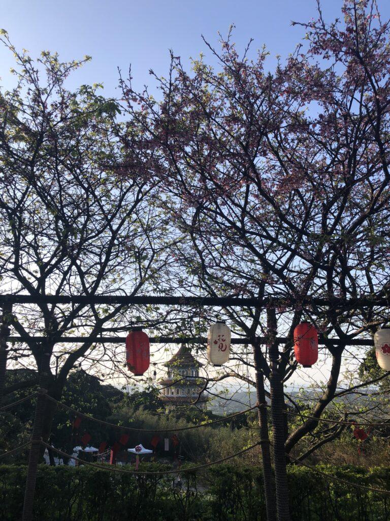 Wuji Tianyuan temple, on a hill north of Tamsui, seemed fairly standard. I climbed past a formidable pagoda to a garden considered the best spot around Taipei for sakura.