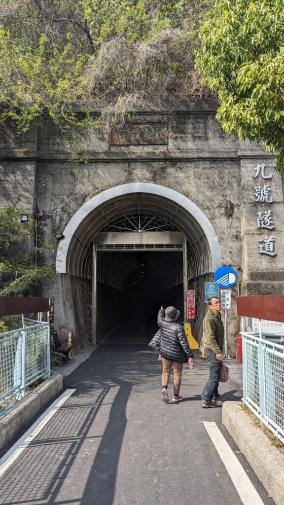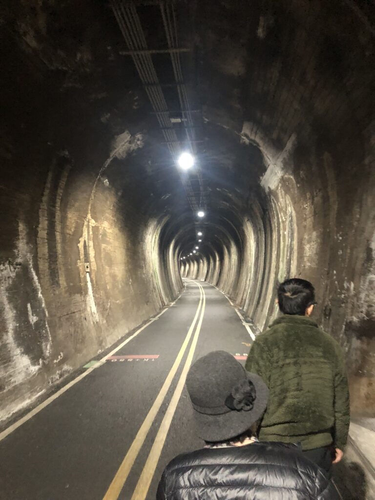 After lunch, we watched the bullet train from an observation deck so famous for it, that there was a bulletin board with train times; tasted outlandish wine at a winery (honey, cranberry, mulberry, onion, enzyme); and crossed a former railway bridge and tunnel.