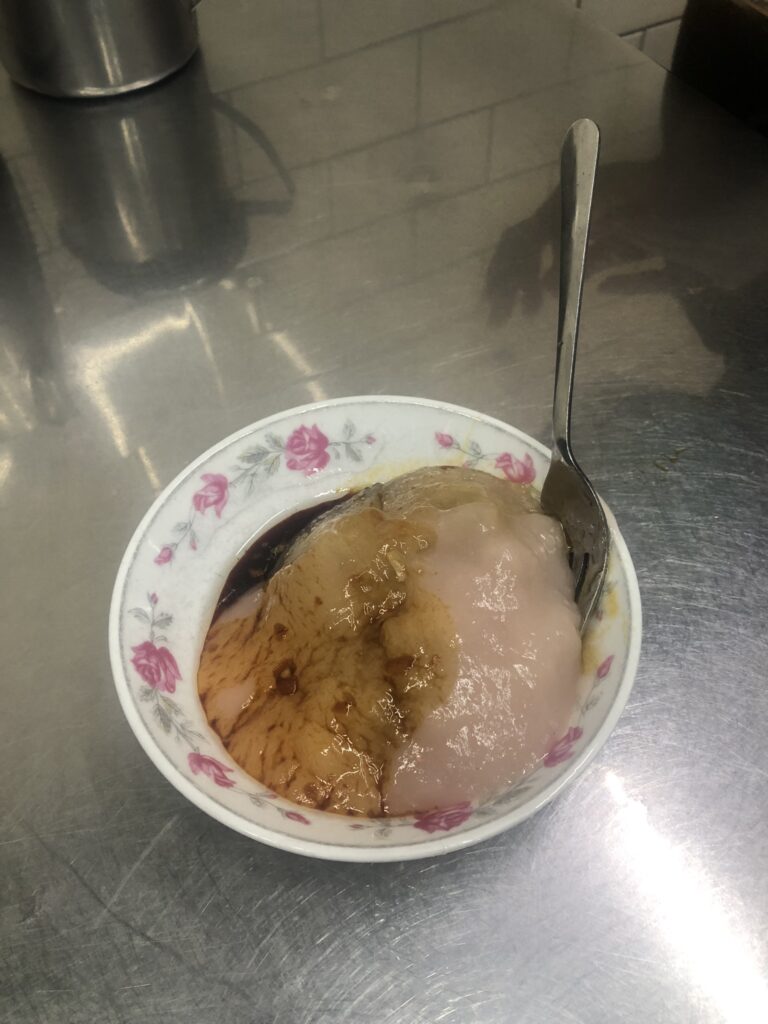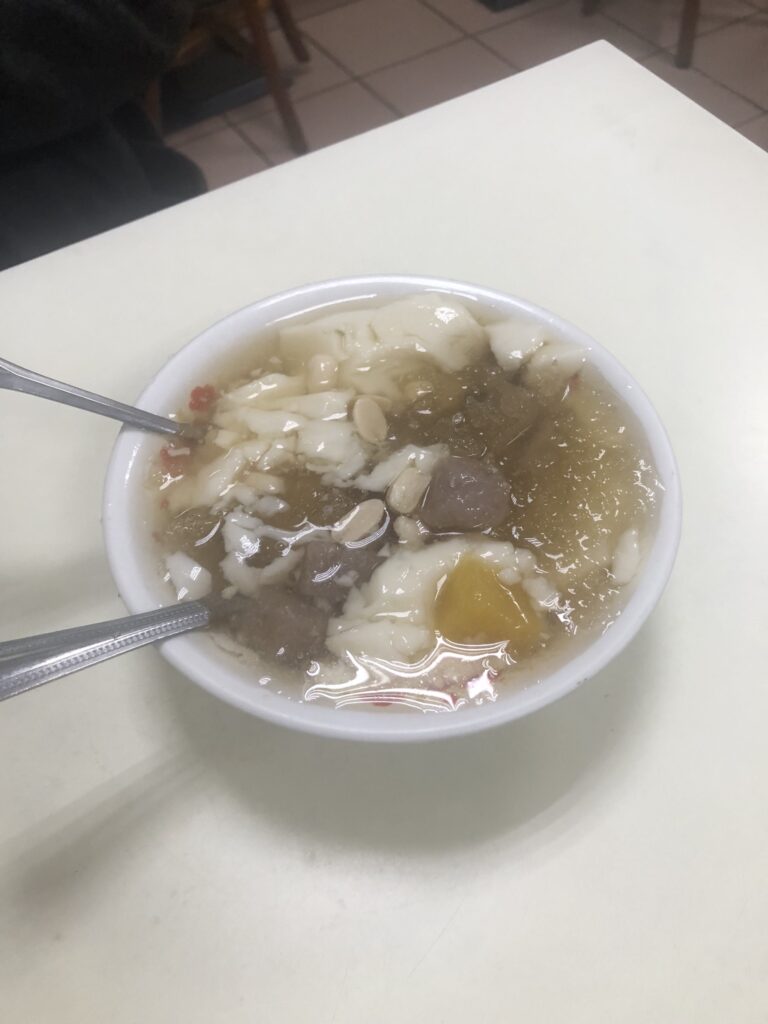 Third, a tofu pudding with taro and sweet potato balls in a non-sweet soup. I missed Tainan, where everything was sweet.