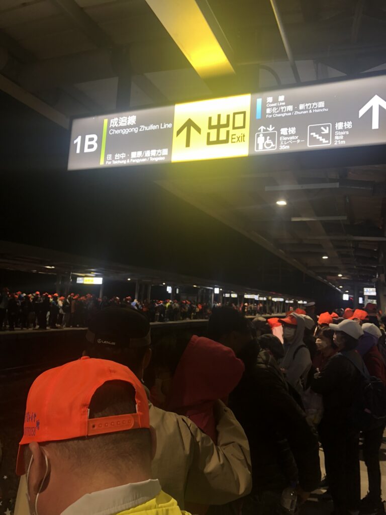 But I didn’t know what was happening, where it was going, or why. Every single person around me was Taiwanese. Striding south, sleeping on the floor inside the station, or sitting on the pavement, wrapping bandages around their feet. With my stomach rumbling and phone battery about to perish, I began to follow the swarm.
