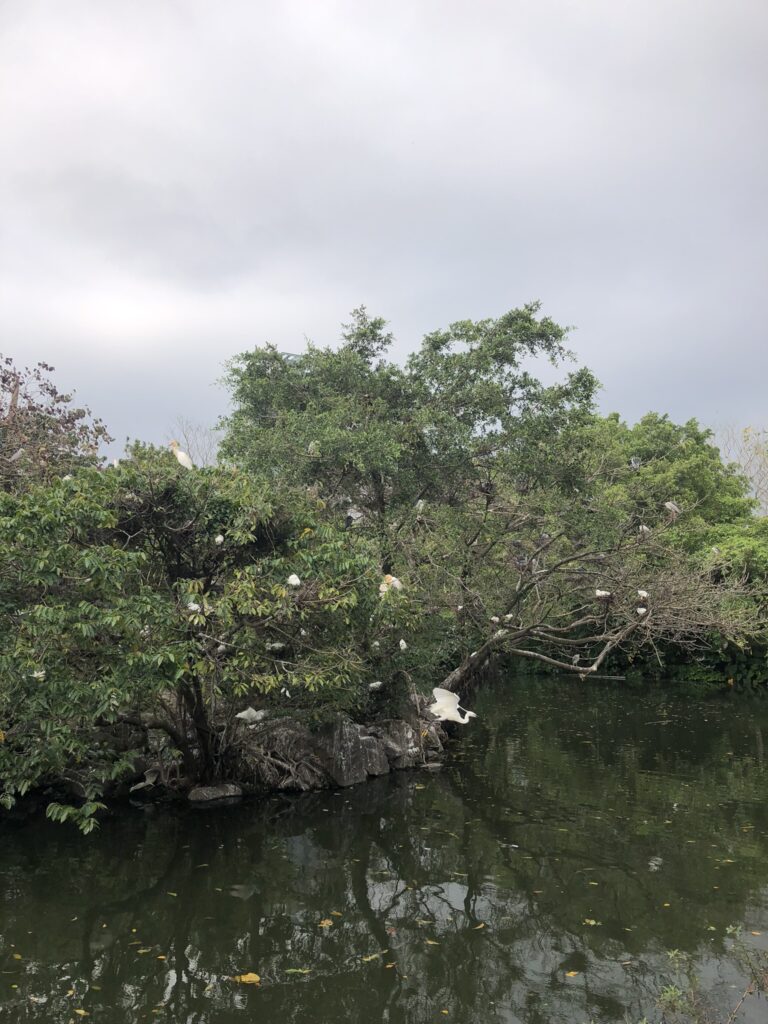 I ambled around birds and flowers, feeling relaxed. Dozens of great egrets were cawing and fishing. I leaned against a palm tree and journaled on the grass.
